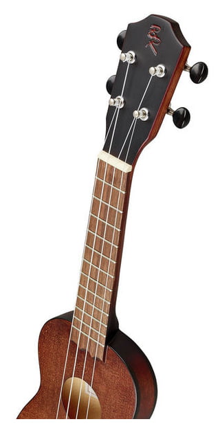 Гриф укулеле Baton ROUGE UR101-ST выполнен также из ели, накладка на гриф и бридж сделаны из ореха. У гитары 12 ладов, а порожки выполнены из материала Nubone. Это разновидность материала TUSQ с лучшими тональными характеристиками. Ширина верхнего порожка – 35 мм. Четыре струны гитары – Aquila Nylgut. Колки сделаны открытыми хромированными с черными лепестками. Мензура данной укулеле – 340 мм.