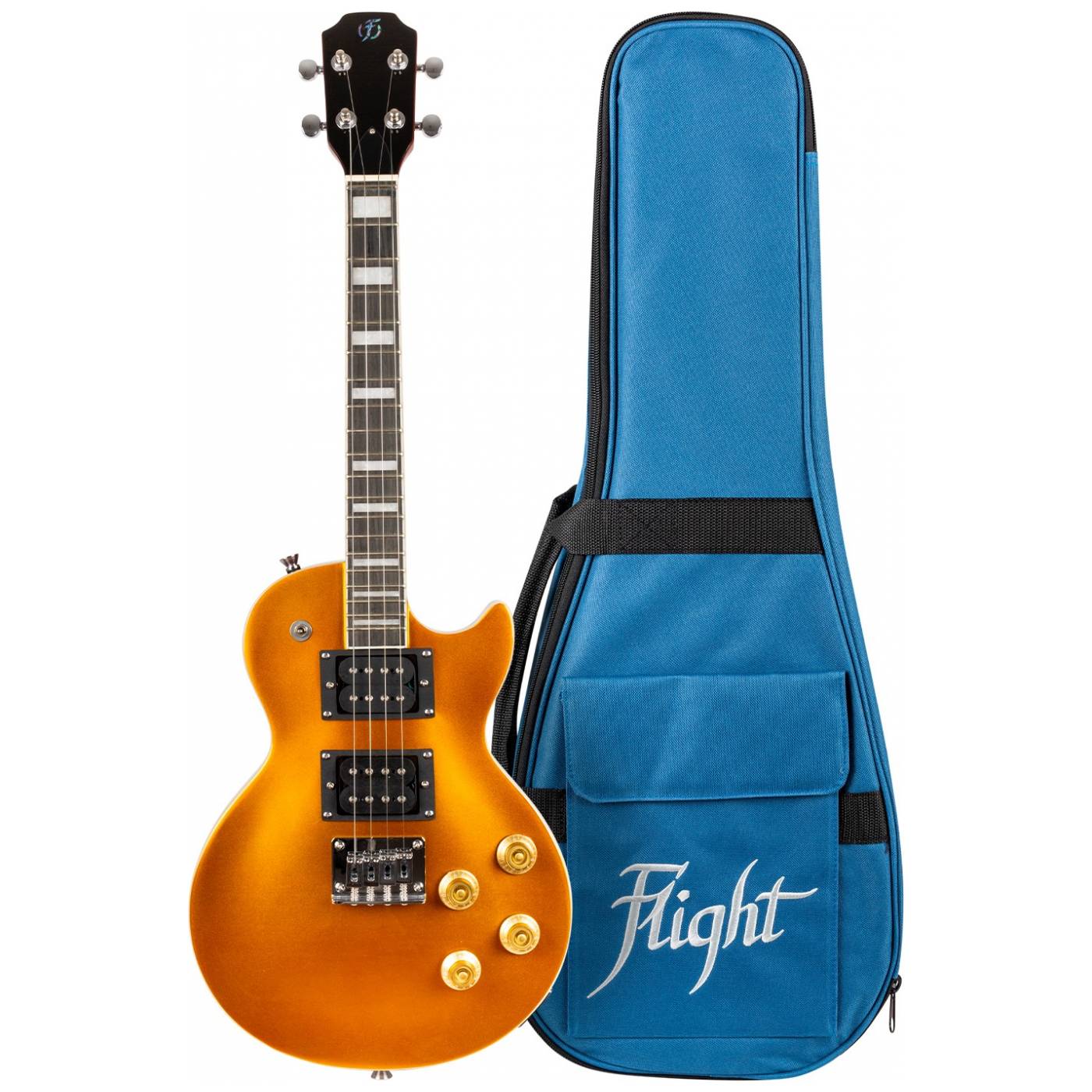 Flight Centurion Tenor GT - это цельнокорпусные электроукулеле формы Les Paul с вырезом в размере тенор в золотом цвете.