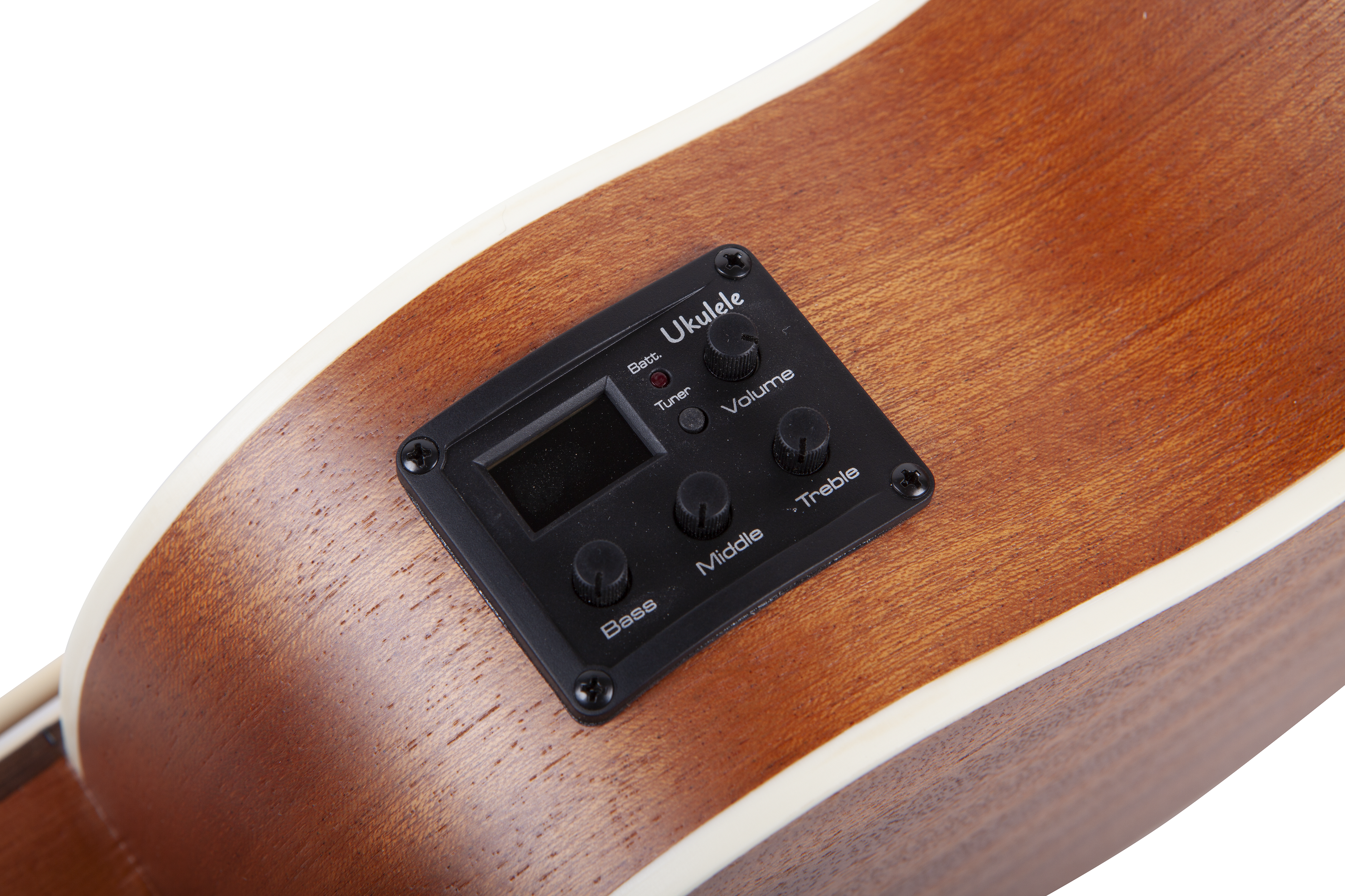 FZUB-003 оснащен подпорожковым пьезозвукоснимателем и активным предусилителем. Трехполосный эквалайзер дает возможность детально отстроить тембр звучания инструмента, а встроенный хроматический тюнер имеет дисплей с подсветкой и позволяет легко настроить укулеле даже на темной сцене.