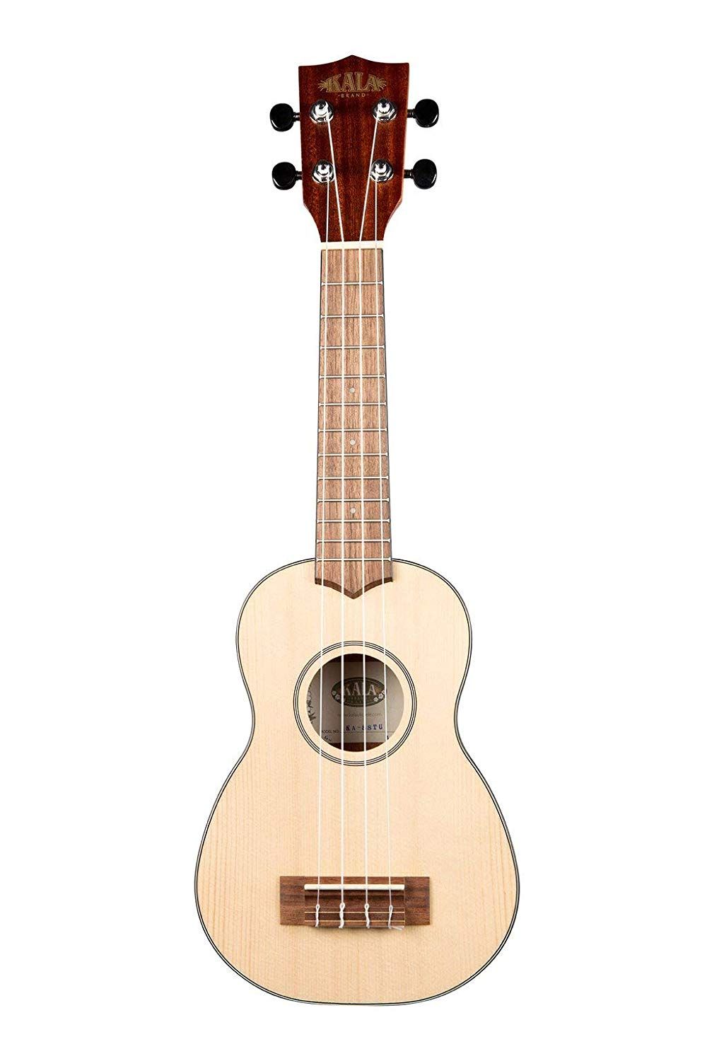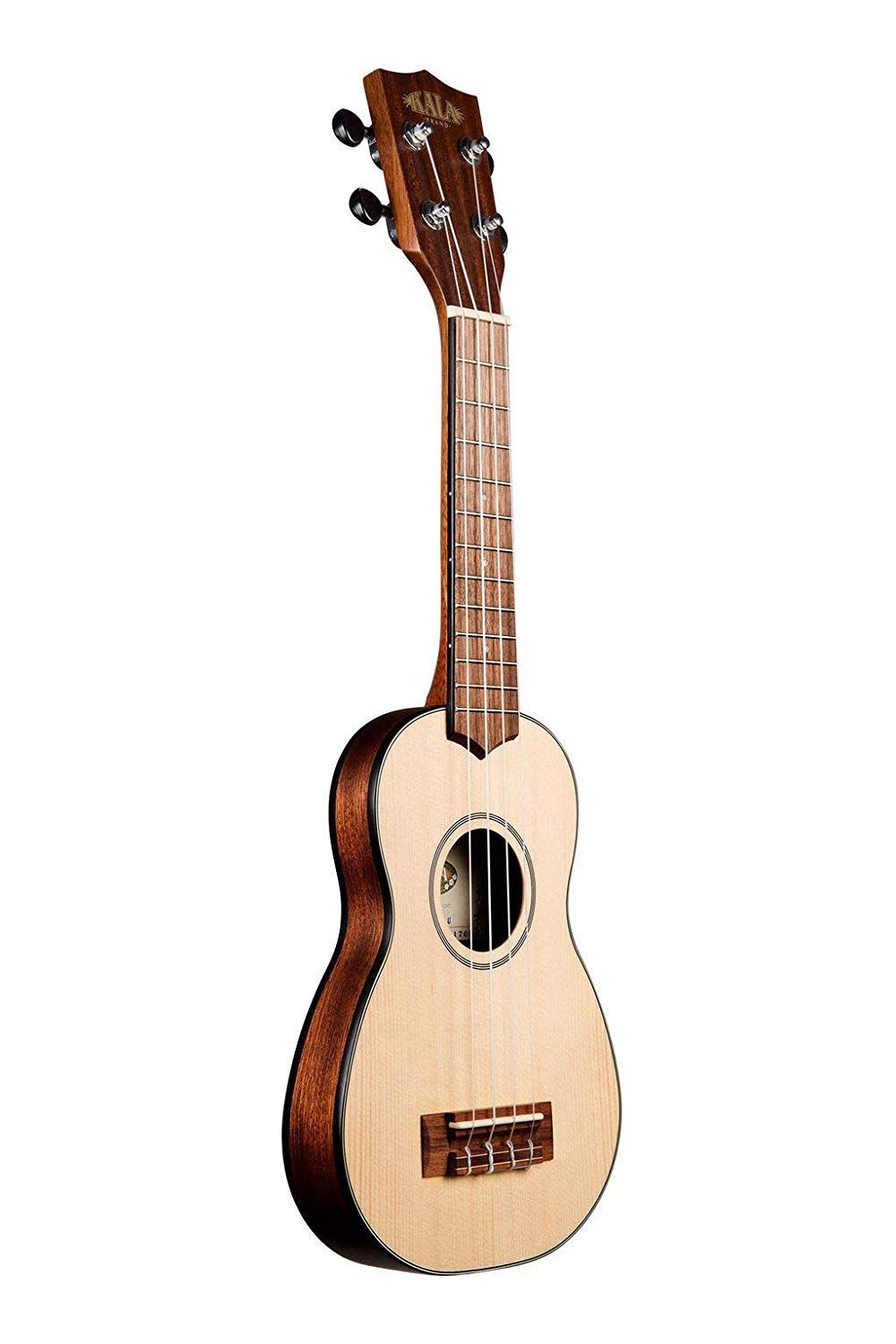 укулеле, форма корпуса - сопрано, цвет натуральный, верхняя дека - массив ели, окантовка черного цвета, нижняя дека и обечайки - махагони, гриф - махагони, накладка грифа, орех, мензура 13,5625", 12 ладов, в комплекте чехол.