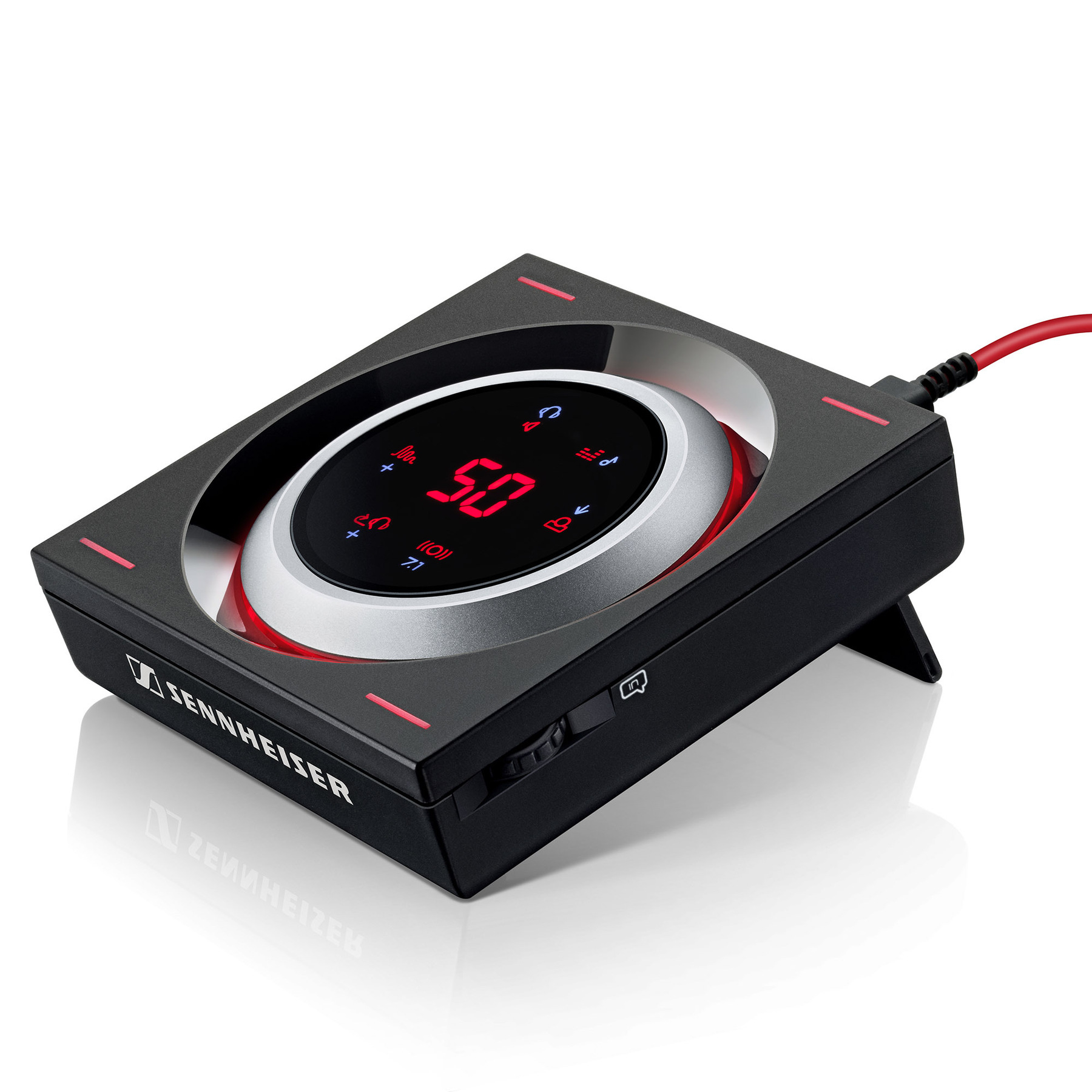 Усилитель для наушников с поддержкой бинаурального звучания, встроенный ЦАП, поддержка аудио до 24 бит/96 кГц, входы: mini-USB, 3,5 мм микрофон, 2,5 мм Chat Link, выходы: 3,5 мм для наушников, линейный, 2,5 мм Chat Link, габариты 76 х 132 х 15 мм, вес 413 г.