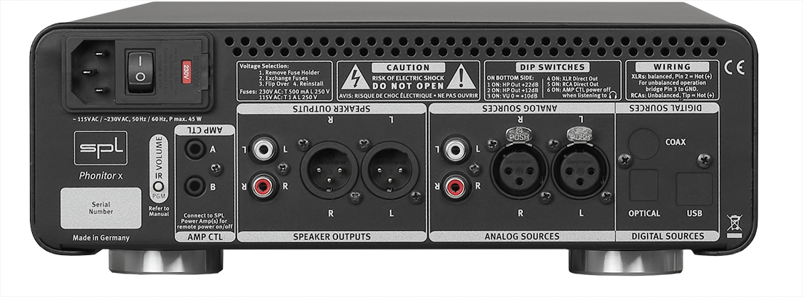 Балансный усилитель для наушников/пред. усилитель с встроеным ЦАП (Входы: XLR, RCA, AES/EBU, Coaxial, TOSLINK, USB (B), выходы: балансный 4-pin XLR, Jack 6,35mm, XLR, RCA). Ширина передней панели 278мм.