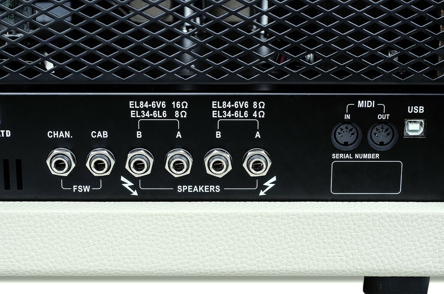 - Ножной переключатель каналов: стерео 6,3 мм. Кончик: Boost, кольцо: Channel.