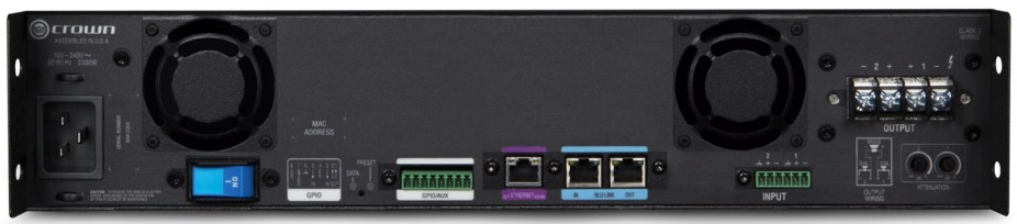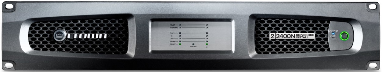 Crown DCi 2|2400N – 2-канальный усилитель мощности из серии DriveCore Install. Как и во всех других моделях серии, в новых усилителях используется фирменная технология DriveCore от Harman, за счёт чего новинки отличаются высокой эффективностью и компактным форм-фактором (занимают 2U пространства рэковой стойки). Модель DCi 2|2400N способна работать с нагрузкой 2 – 16 Ом, а также на линию 70/100 В. Кроме того, предусмотрена возможность работы в мостовом режиме. Модель оснащена мощным DSP-процессором, а также цифровым интерфейсом BLU Link и балансными аналоговыми входами. BLU Link обеспечивает маршрутизацию 256 каналов с использованием обычного кабеля Cat5e. Мониторинг состояния и управление различными настройками усилителей осуществляются через сеть HiQnet, возможно использование программного обеспечения Audio Architect и приложения Powered by Crown. Что касается встроенного DSP-процессора, то его возможности включают в себя лимитеры LevelMax, эквалайзер, компрессор, матричный микшер, дилей и мониторинг линии. Из прочих особенностей можно отметить оптимизированную систему охлаждения с плавной регулировкой скорости вращения вентиляторов плюс универсальный источник питания с PFC.