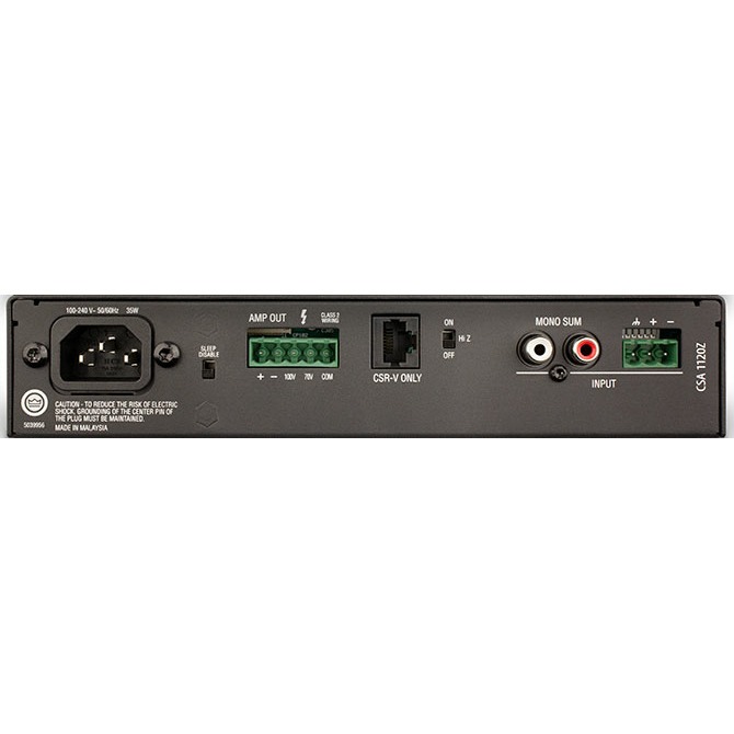 JBL CSA1120Z – одноканальный трансляционный усилитель в рэковом корпусе высотой 1U. Работа возможна как с низкоомной акустикой (4-8 Ом), так и в трансляционных линиях 70/100В. Встроенный усилитель базируется на моделях серии DriveCore: более 500 компонентов заменены всего одним чипом. Мощность составляет 120 Вт/канал.