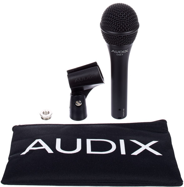 Audix OM7 – это профессиональный ручной вокальный микрофон с динамическим гиперкардиоидным капсюлем. Суперкардиоидная диаграмма направленности даёт высокое усиление перед возникновением обратной связи. Равномерный шаблон даёт превосходный захват звука в узкой области. Микрофон оптимизирован как для живых выступлений, так и для использования в домашних и профессиональных студиях благодаря фирменной диафрагме низкой массы VLM. Он подходит как для вокала, так и для подзвучивания гитарных комбо, малого барабана, томов, перкуссии, для живой работы в передвижных звуковых комплексах. Для достижения преимуществ в производительности данный микрофон разработан с нетрадиционно низким уровнем выходного сигнала (на 8-10 дБ ниже, чем в обычных динамических микрофонах). Этот низкий уровень выходного сигнала действует как естественный аттенюатор в капсюле. OM7 лучше всего подходит для использования с высококачественными микшерными консолями.