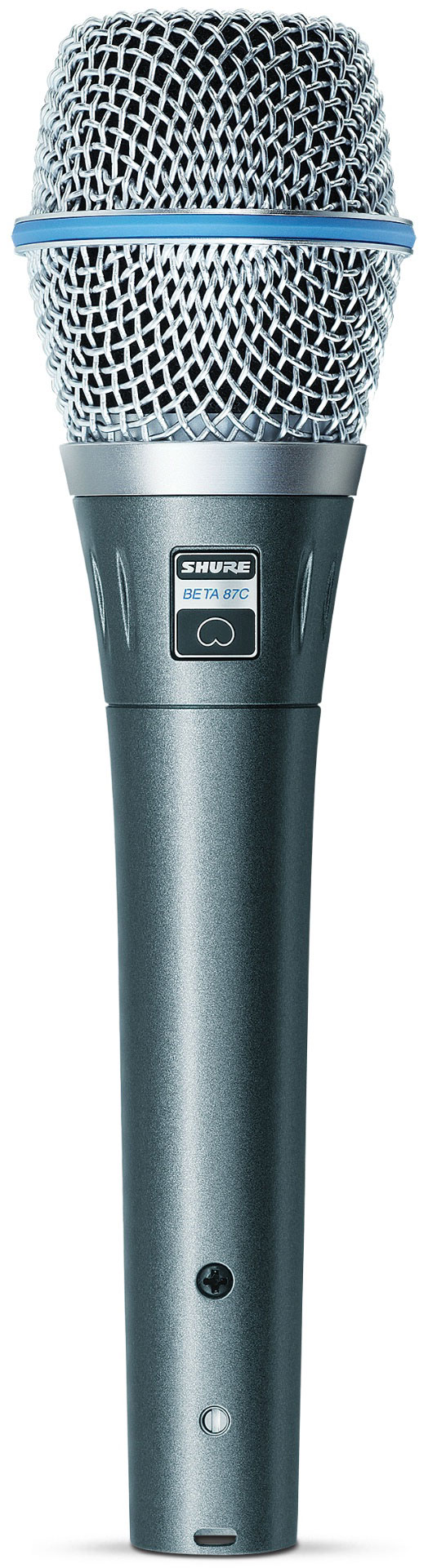 Shure BETA 87C – ручной микрофон с конденсаторным кардиоидным капсюлем, выпущен как улучшенная версия легендарного микрофона BETA 87A. Кардиоидная диаграмма направленности даёт хорошее усиление перед возникновением обратной связи, а её равномерный шаблон – превосходный захват звука в узкой области. Данный микрофон идеален как для живого использования, так и для записи в студии: частотная характеристика идеально подходит для лид-вокала, а НЧ-фильтр поможет выступлению. Прочная конструкция передатчика из металлического сплава с решеткой из закалённой стали выдержит тяготы туровой жизни и использования на концертах.