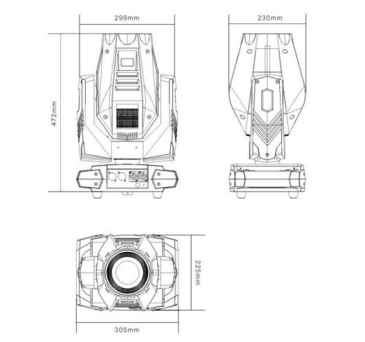 - Разъемы DMX-входа/выхода: 3-pin XLR male/female