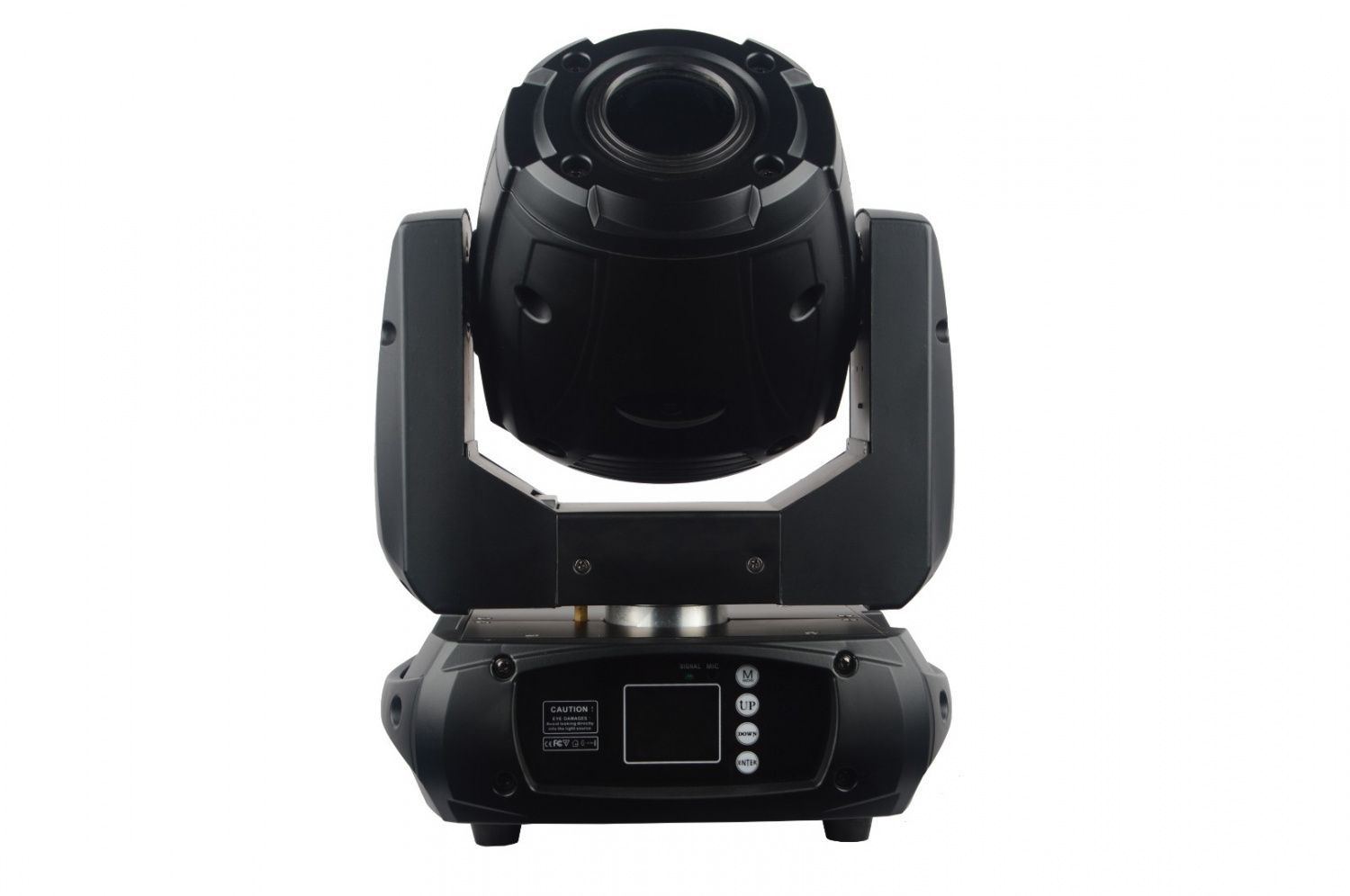 Вращающаяся голова Spot, светодиод 150 Вт. Угол раскрытия луча 13°. 8 цветов + белый, 6 вращающихся гобо + открытая, 10 статичных гобо + открытая, вращающаяся трехгранная призма, электронный фокус. Pan 540° Tilt 270°. Электронный диммер 0-100%, строб. Управление: DMX512, количество каналов DMX 14,12, звуковая активация, автоматический режим, master/slave. Габариты: 266 x 177 x 362 мм. Вес: 6.6 кг.