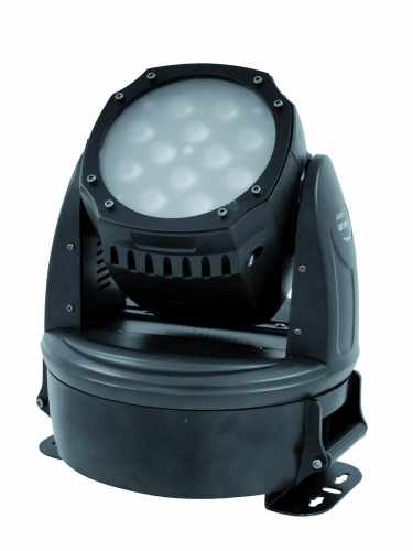 Вращающаяся голова с 12 x 9 W трехцветными светодиодами с  RGB сменой цвета.