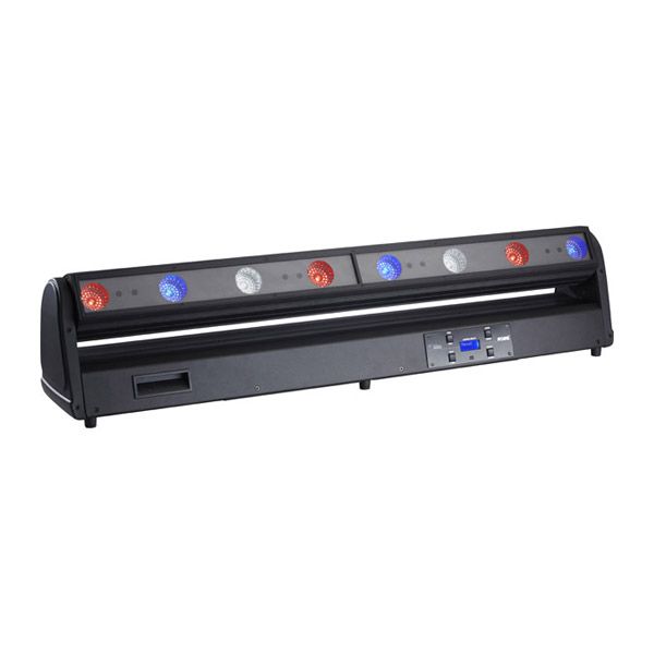 Светодиодный прибор с полным движением, 8 x 15 Вт RGBW, срок службы светодиодов: 60 000 часов, моторизованный зум: 8°– 63°, диммер: 0 - 100%, движение Tilt 270°, максимальное энергопотребление 152 Вт, габариты: 230х1000х180 мм, вес 13,9 кг.