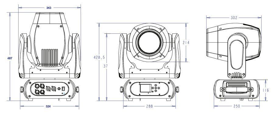 - Функция RDM: смена DMX-адреса, переворачивание дисплея, реверс движения X/Y, считывание напряжения, тока, энергопотребления лампы и срока службы лампы, обновление программного обеспечения через DMX