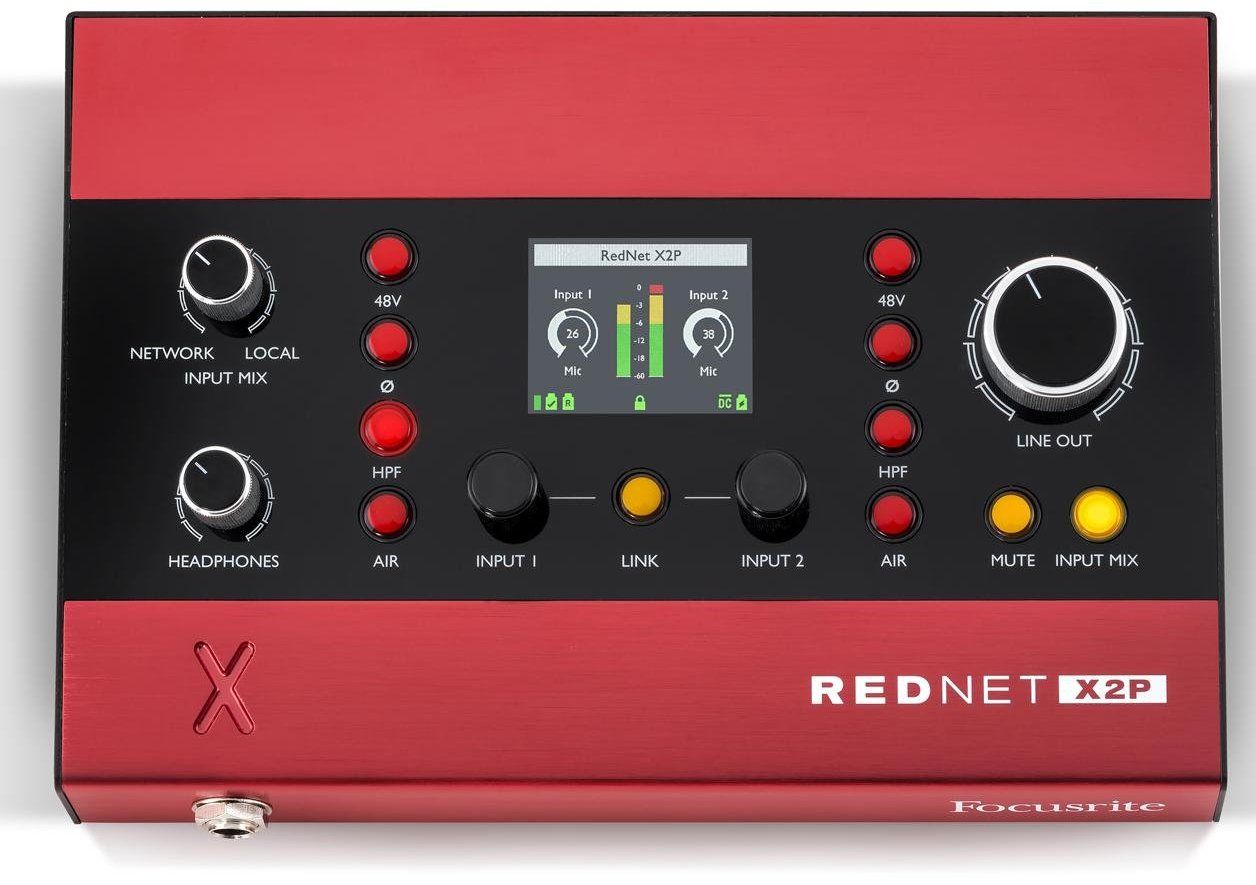 Focusrite RedNet X2P Dante-интерфейс 2х2, 2 предусилителя Red Evolution, линейный стерео-выход, предусилитель для наушников