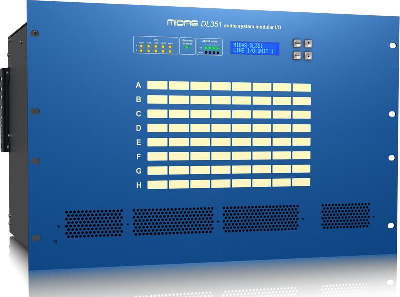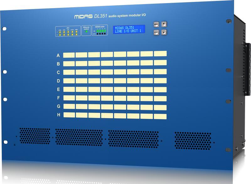 DL351 представляет собой модуль в 19-дюймовом корпусе высотой 7 условных единиц и обеспечивает до 64 аудиовходов и 64 аудиовыходов. DL351 работает с тем же пользовательским форматом карт, что и DL451, поддерживая при этом до 8 карт в любой из следующих комбинаций: 8 аналоговых микрофонных/линейных входов, 8 аналоговых выходов (XLR), 8 аналоговых TRS линейных входов и выходов, 8 цифровых входов и выходов (4 AES/EBU пары) и 25-пиновую В Sub-карту с 8 аналоговыми микрофонными/линейными входами и 8 выходами.