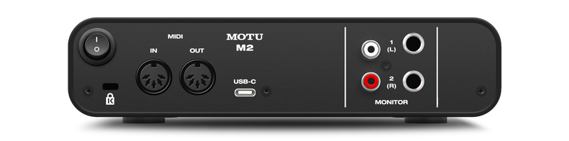 MOTU M2 – младший интерфейс серии, предназначенный для мобильного использования и небольших студий начального уровня. Модель оснащена преобразователем ESS Sabre32 Ultra, который используется в более дорогих устройствах производителя и имеет динамический диапазон в 120 дБ. Аудиоинтерфейс поддерживает работу с режимами частоты дискретизации до 192 кГц и обеспечивает низкий уровень звуковой задержки сигнала.