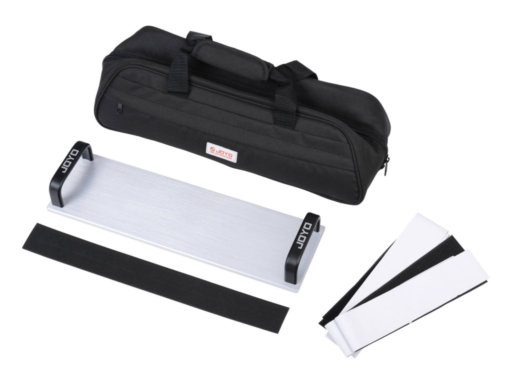 - Легкий алюминиевый мини-педалборд в комплекте с сумкой и липучками для крепления педалей.