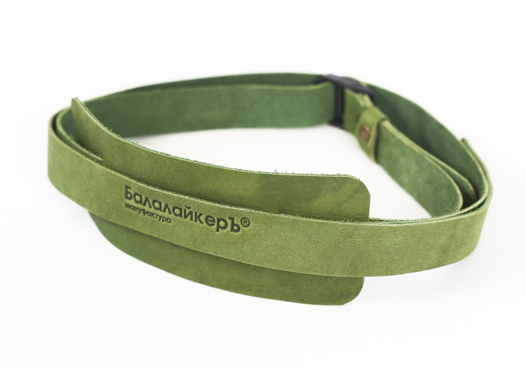 Удобное и стильное дополнение к фирменным инструментам БалалайкерЪ. Изготовлен из прочного износостойкого материала - натуральной кожи. Ремень предназначен для наплечного подвеса балалайки при игре стоя, во время движения и пляски. Внутренняя поверхность ремня имеет шероховатую поверхность - это помогает надёжно фиксировать инструмент и препятствует его соскальзыванию. Ремень подходит для подвеса различных акустических инструментов фольклорного типа (мандолина, бузуки, укулеле и др.).