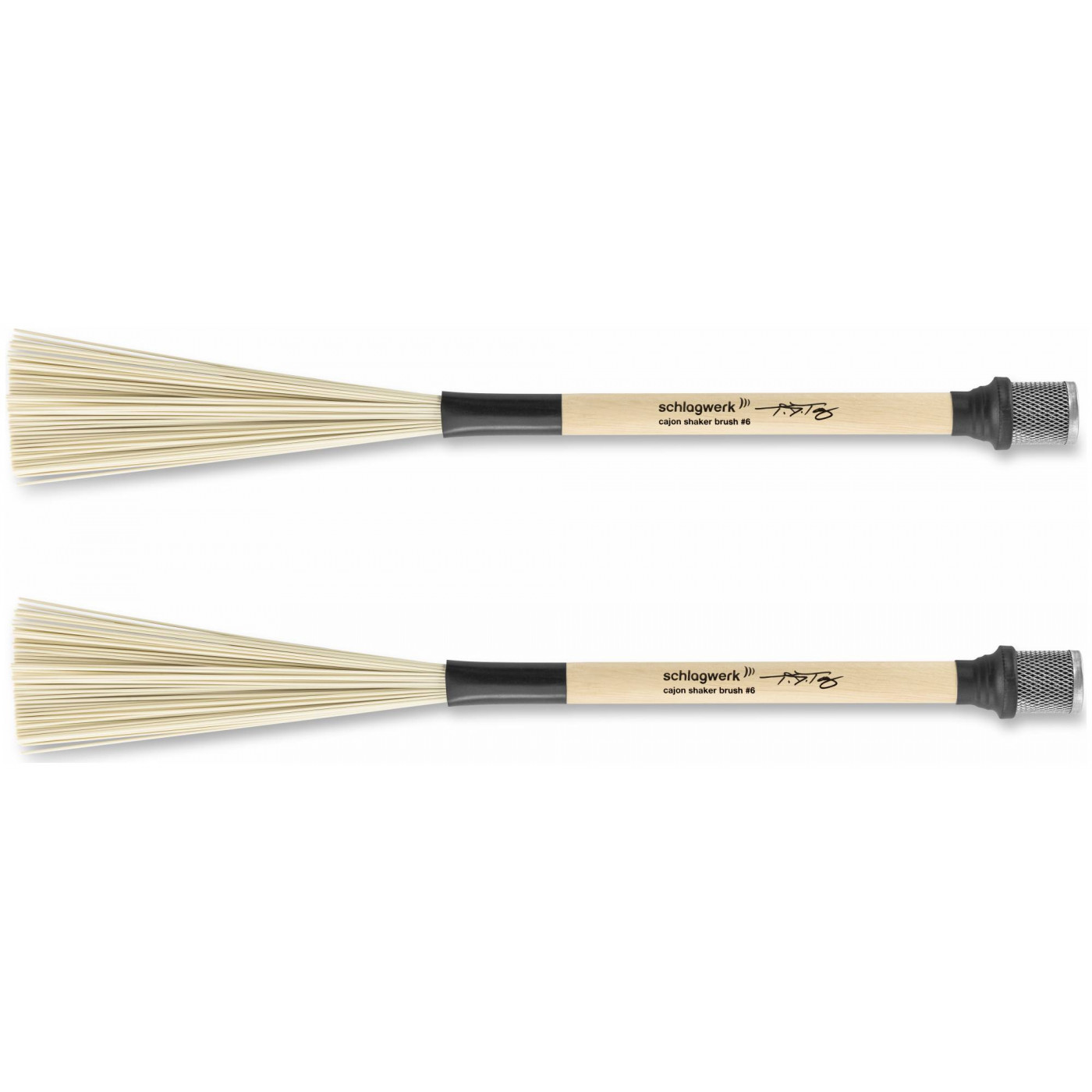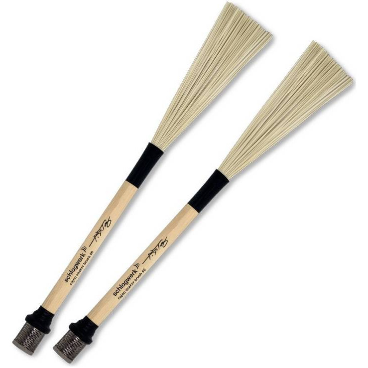 Щетки Schlagwerk BRC06 были созданы в сотрудничестве с американским перкуссионистом T.J.Troy. Щетки с ручкой 15,8 мм. чрезвычайно удобны и комфортно и сбалансировано лежат в руке. Нейлоновые щетинки создают теплый, насыщенный звук при игре на кахоне. Однако основная отличительная особенность щеток BRC06 - это капсулы с шейкером, прикрепленные к концу щеток. Играя щетками, вы дополнительно получаете приятный звук шейкера. В качестве альтернативы, щетки можно использовать как обычный шейкер или даже комбинировать с техникой барабанной палочки во время игры в воздухе, что дает бесконечные возможности.