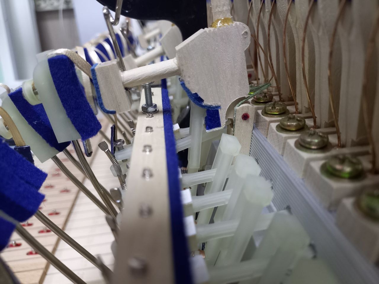 Кроме этого, усовершенствован механизм левой педали инструмента – при её нажатии уменьшается ход молоточков, а также опускается клавиатура инструмента и нивелируется люфт. Конструкция обеспечивает тонкий контроль звука и сохраняет выразительность тембра при уменьшенной громкости. А сочетание левой педали и модератора делает инструмент практически беззвучным! Аналогичная функция реализована на четырехпедальных роялях Fazioli.