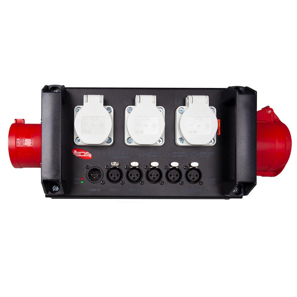 Тип дистрибьютор питания Вход вилка РСЕ СЕЕ 32А 5-pol Выход розетка РСЕ СЕЕ 32А 5-pol — 1 шт Вход XLR Male 3-х контактный Neutrik Выход 4+1 (проходной)х XLR Female 3-х контактный Neutrik Индикация включение в сеть, наличие DMX сигнала на входном и выходных каналах Дополнительно гальваническая развязка и усилитель сигнала на каждом канале