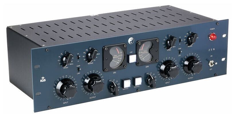 IGS Audio Zen — двухканальный компрессор, основанный на схемах классических устройств, используемых в студии Abbey Road. Аудиосхема ZEN Compressor основана на 14 биполярных транзисторах в каждом канале. Компрессия достигается с помощью 8 согласованных вручную стабилитронов, смещенных точной схемой обратной связи. На передней панели находится 10 регуляторов, 3 кнопки, 5 переключателей и 2 измерителя. Компрессор подходит для мастеринга и трекинга. В устройстве используются фирменные трансформаторы IGS Custom, а коммутационные возможности включают 2 XLR входа и 2 XLR выхода.