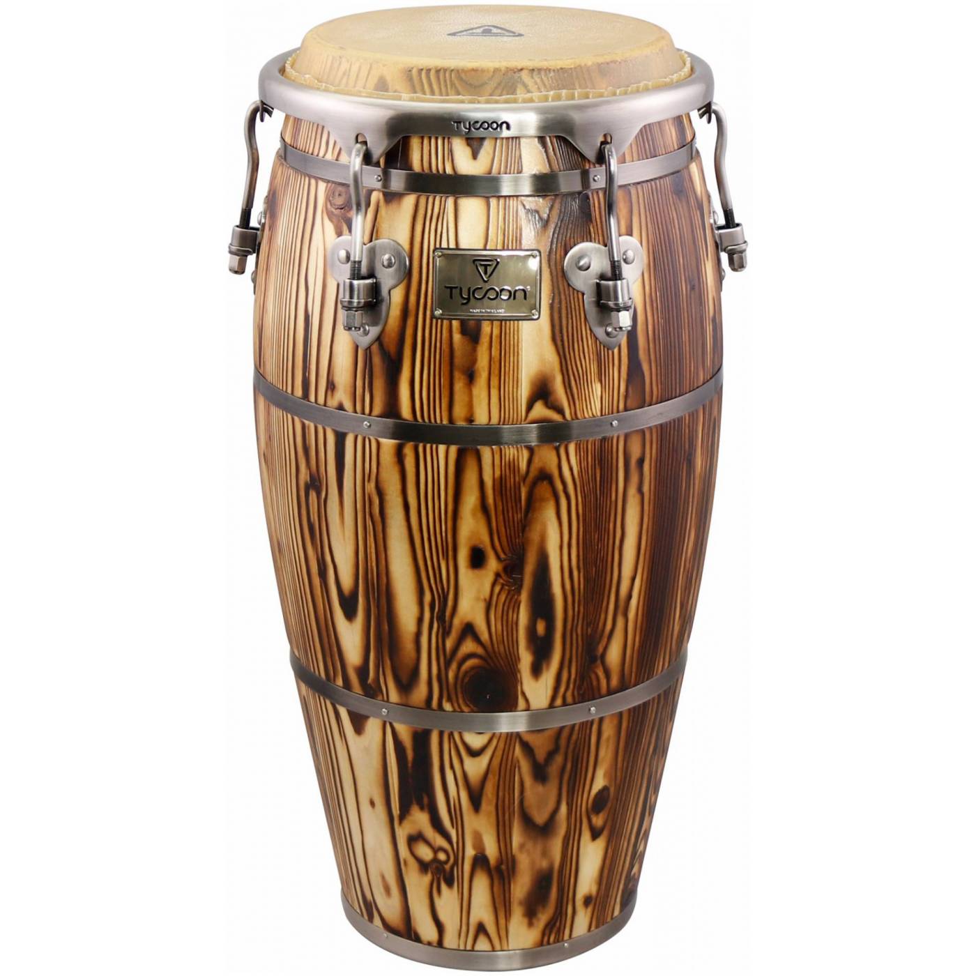 Описание:Корпус данного конго состоит из специально разработанной 3-слойной конструкции с двумя внутренними слоями, изготовленными из сиамского дуба для максимальной прочности и долговечности, и внешним слоем, из русской сосны для уникального внешнего вида. Традиционная форма корпуса в виде кубка с широкой серединой для создания богатых, глубоких басовых тонов и ярко выраженных шлепков. Фурнитура представлена стальными ободами с матовым хромированным покрытием, усиленными боковыми пластинами с регулировочными лагами диаметром 3/8 дюйма. Дополнительно три стальных обруча охватывают корпус барабана, обеспечивая ещё большую стабильность и подчеркивая традиционный внешний вид этого инструмента. Литая под давлением ручка с подобранной по цвету фурнитурой. Мембрана выполнена из кожи азиатского буйвола высшего качества, которая даёт яркое богатое тёплое звучание и превосходный отклик. В серии Master Heritage применяется уникальная технология отделки, заключающаяся в контролируемом “обжиге” древесины русской сосны, чтобы намеренно создать и подчеркнуть эффект неотёсанного сырого дерева с поверхностными трещинами и характерным рисунком "птичьего глаза" на срезе. Данная серия наглядно демонстрирует, что Tycoon является мировым лидером в создании уникальных вариантов отделки инструментов. Они сочетают тонкость ручной росписи, выполненной квалифицированными мастерами, с современной глянцевой обработкой и полировкой, в результате чего получаются действительно оригинальные изделия, которые никогда не повторяются. Конги из серии Master, вырезаны вручную высококвалифицированными специалистами. Каждый мастер уникален по-своему, поэтому каждый барабан в этой серии неповторим!