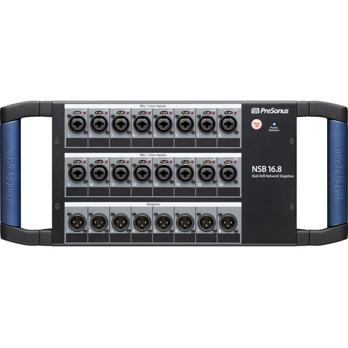 Presonus NSB 16.8 - цифровой мультикор, разработанный специально для использования с консолями/рекордерами StudioLive Series III. Модель оборудована 16 входами и 8 выходами для быстрой и легкой настройки сигналов от стейджбокса к микшеру по сети AVB. Все сигналы проходят через один легкий кабель CAT5e или CAT6 Ethernet. С сетевой консоли III серии или с помощью бесплатного программного обеспечения Touch-Control от PreSonus UC Surface имеется возможность дистанционного управления входами, предусилителями и фантомным питанием NSB 16.8. Устройство имеет 16 комбинированных микрофонных / линейных входов, оснащенных известными дистанционно управляемыми предусилителями XMAX класса A. На всех восьми выходах используются блокирующие разъемы XLR, кроме того встроенный 2-портовый AVB-коммутатор позволяет подключать еще дополнительно несколько блоков. NSB 16.8 оснащен ручкой для удобной транспортировки, а корпус изготовлен из прочной стали, что позволяет использовать стейджбокс даже в суровых условиях. Он может быть помещен прямо на сцене или же установлен в стойку. NSB 16.8 также совместим со сценическими карманами от Ace Backstage.