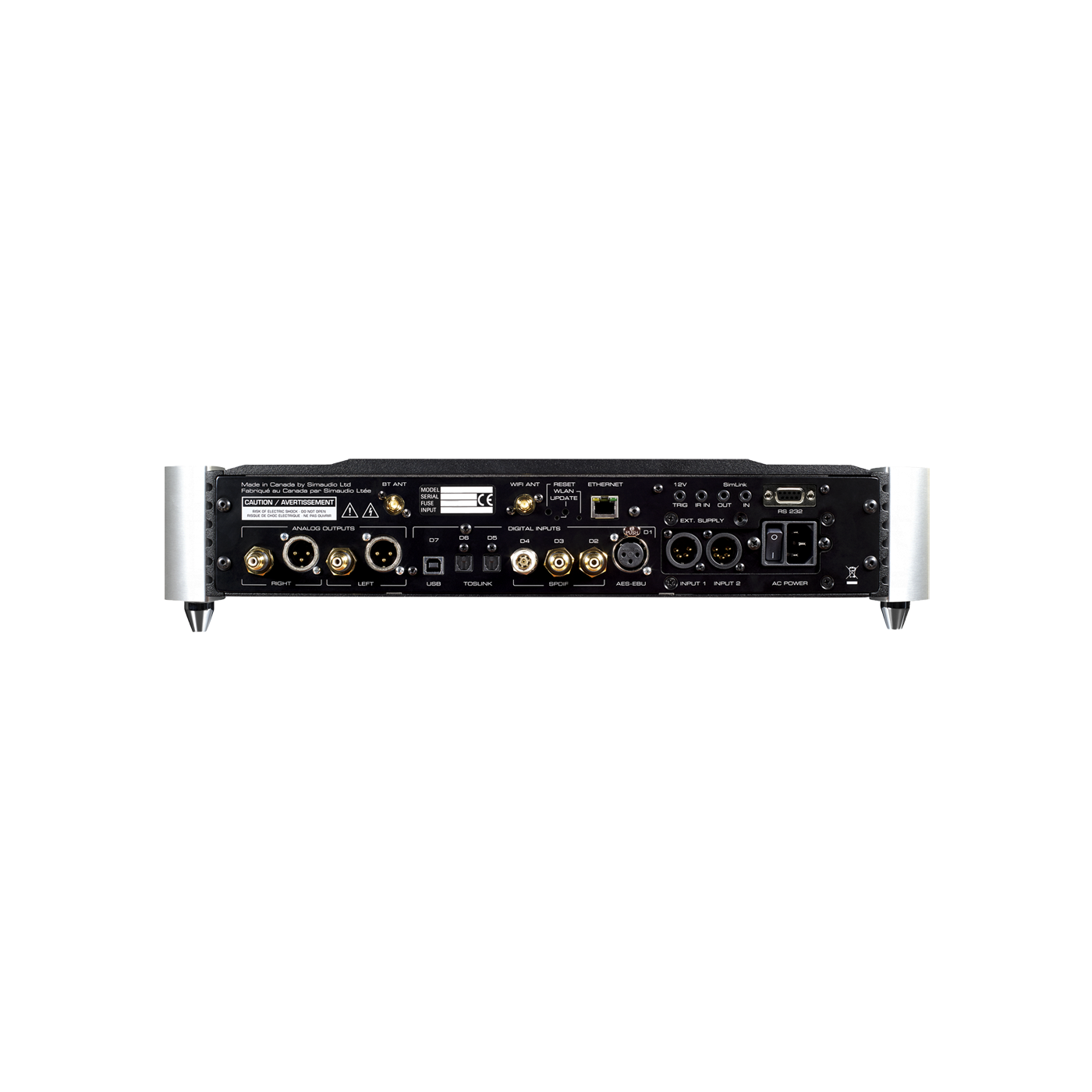 - Coaxial 2 x S/PDIF (RCA), 1 x S/PDIF (BNC), 1 x AES/EBU (XLR)