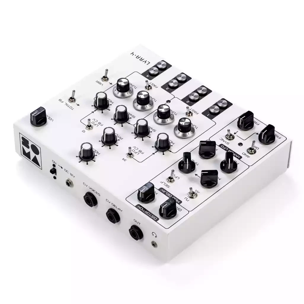 Описание:SOMA Lyra‑4 - компактный дрон-синтезатор, основанный на четырех генераторах, называемых "голосами". Эти голоса не являются классическими VCO, их работа ближе к тон-генераторам старых электронных органов, с выраженной нелинейностью. Lyra-4 работает в режимах электрического органа и FM-синтеза. Помимо генераторов, синтезатор оснащен гипер-LFO, который состоит из двух простых LFO, создающих сложные волны для управления параметрами, и мод-дилеем с функцией самомодуляции. Последним в цепи сигнала стоит встроенный блок дисторшна. Модель выполнена в прочном корпусе.