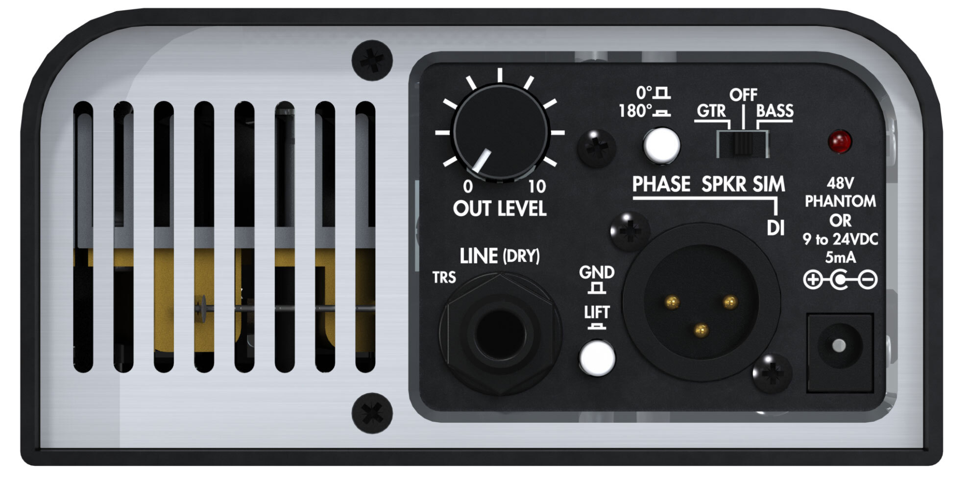 - Питание требуется только для выхода XLR DI и спикер симуляции