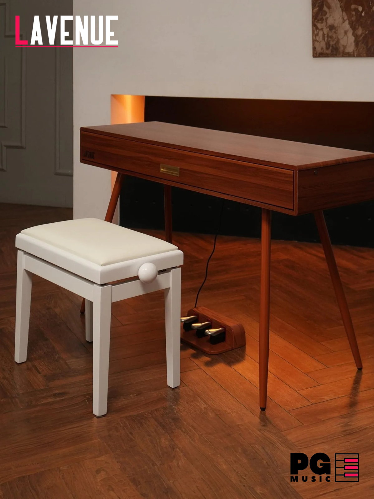 Основная идея интерьерного пианино в виде стола — это сочетание функциональности и эстетики. Отсутствие пюпитра подчеркивает минималистичный дизайн, сохраняя чистоту линий и гармонию с интерьером. Это делает инструмент больше похожим на предмет мебели, чем на традиционное пианино. В сочетании с банкеткой цифровое пианино создаёт ощущение завершенного комплекта, который стильно дополнит интерьер и обеспечит комфортные условия для музицирования. Банкетка имеет регулировку высоты, позволяя удобно расположиться исполнителю любого роста. Её стильная отделка выполнена в матовом либо глянцевом исполнении на ваш вкус, предлагая три варианта цветов: белый, чёрный и коричневый. Вы можете подобрать банкетку как в тон цвета самого инструмента, так и выбрать контрастный оттенок, добавив яркости и выразительности вашему музыкальному пространству.