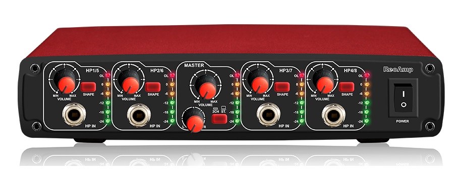 iCON ReoAmp – это профессиональный усилитель для наушников в прочном и компактном алюминиевом корпусе. Устройство обладает необходимой выходной мощностью для подключения профессиональных студийных наушников. Модель имеет 4 выходных канала и поддерживает одновременное подключение до 8 комплектов наушников. Для каждого из 4-х каналов на фронтальной панели предусмотрена ручка регулировки громкости сигнала, 6-ти сегментный светодиодный индикатор уровня громкости, кнопка включения режима Shape Out и разъем для наушников 1/4" Jack TRS. Дублирующие разъемы 1/4" Jack TRS для подключения к каналам второго комплекта наушников расположены на задней панели. Включение режима Shape Out изменяет частотные характеристики сигнала.